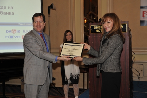 Наградите от името на Първа инвестиционна банка получи изпълнителният директор Мая Георгиева по време на Петата годишна дарителска конференция "Партньорства за по-ефективна благотворителност".