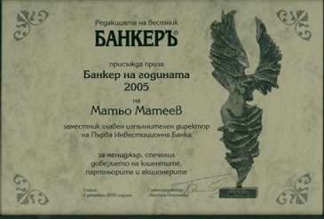 FIBank's Deputy Chief Executive Director Matthew Mateev received the 2005 Banker of the Year Award in the category "Most Trusted by Shareholders and Partners". The annual awards are given by the "Banker" weekly.